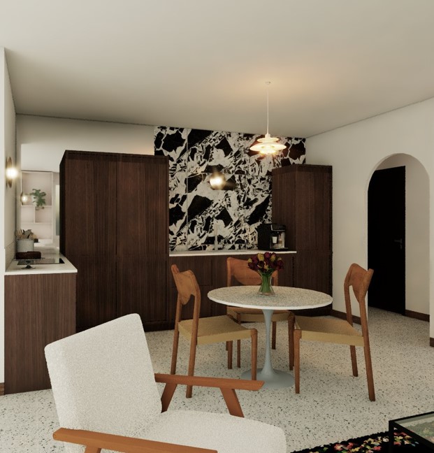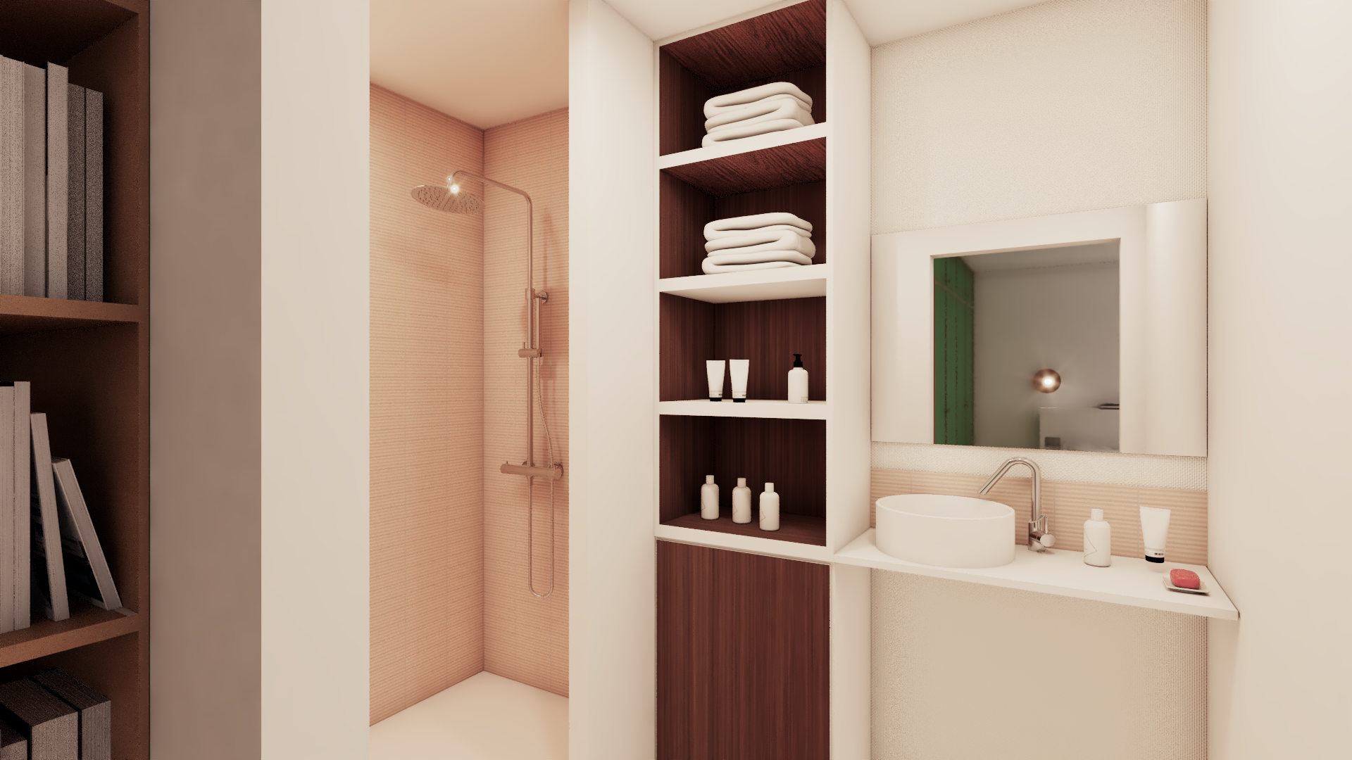 Pensé comme un lieu de vie lumineux et apaisé, ce projet mêle espaces partagés et retraits intimes. La circulation fluide autour de la cuisine centrale crée un lien naturel entre convivialité, fonctionnalité et élégance contemporaine.